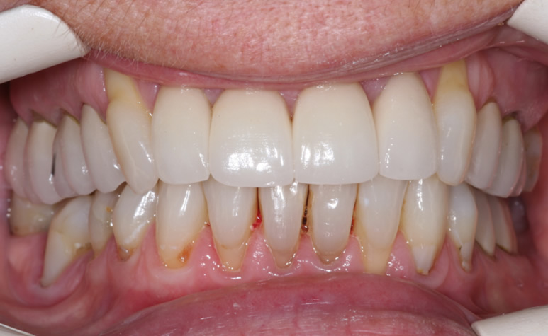 Cosmetically these crowns look the best and are usually applied to the front teeth. These crowns have no grey metal inside them, so if in time the gum recedes, there will be no grey metal margin showing around the crown.