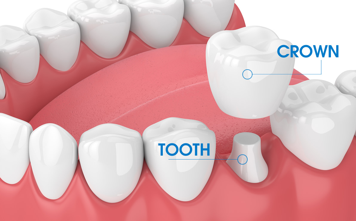 Dental crowns are restorations that protect damaged, cracked or broken down teeth. A crown strengthens your existing, damaged tooth so as to preserve its functionality. Dental crowns are also commonly known as caps (because a crown sits over your existing tooth, covering the entire outer surface).